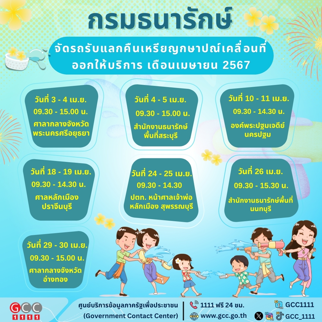 กรมธนารักษ์ จัดรถรับแลกคืนเหรียญกษาปณ์เคลื่อนที่ออกให้บริการ เดือนเมษายน 2567