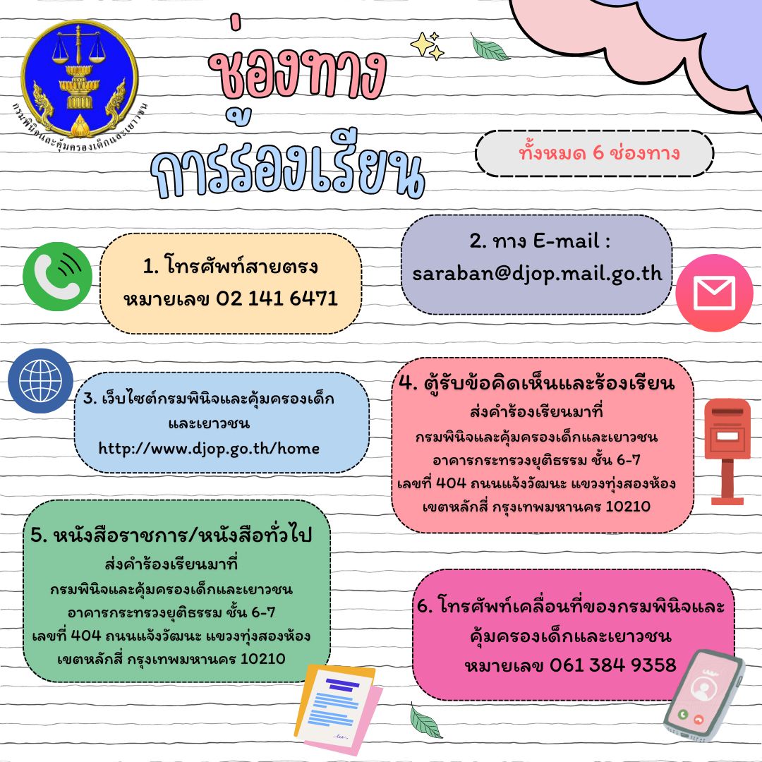 กรมพินิจและคุ้มครองเด็กและเยาวชน แจ้งช่องทางการร้องเรียน