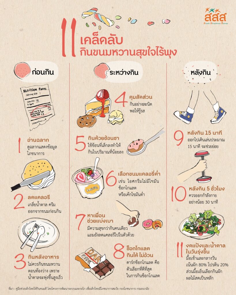 สำนักงานกองทุนสนับสนุนการสร้างเสริมสุขภาพ แนะนำ 11 เคล็ดลับกินขนมหวานสุขใจไร้พุง