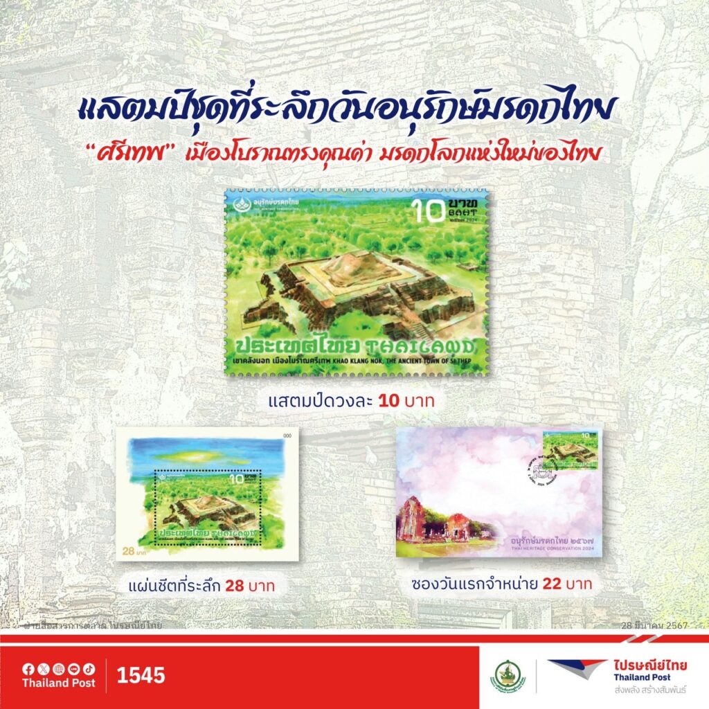 ไปรษณีย์ไทย จัดทำแสตมป์ชุดที่ระลึกวันอนุรักษ์มรดกไทย 2567 เมืองโบราณศรีเทพ