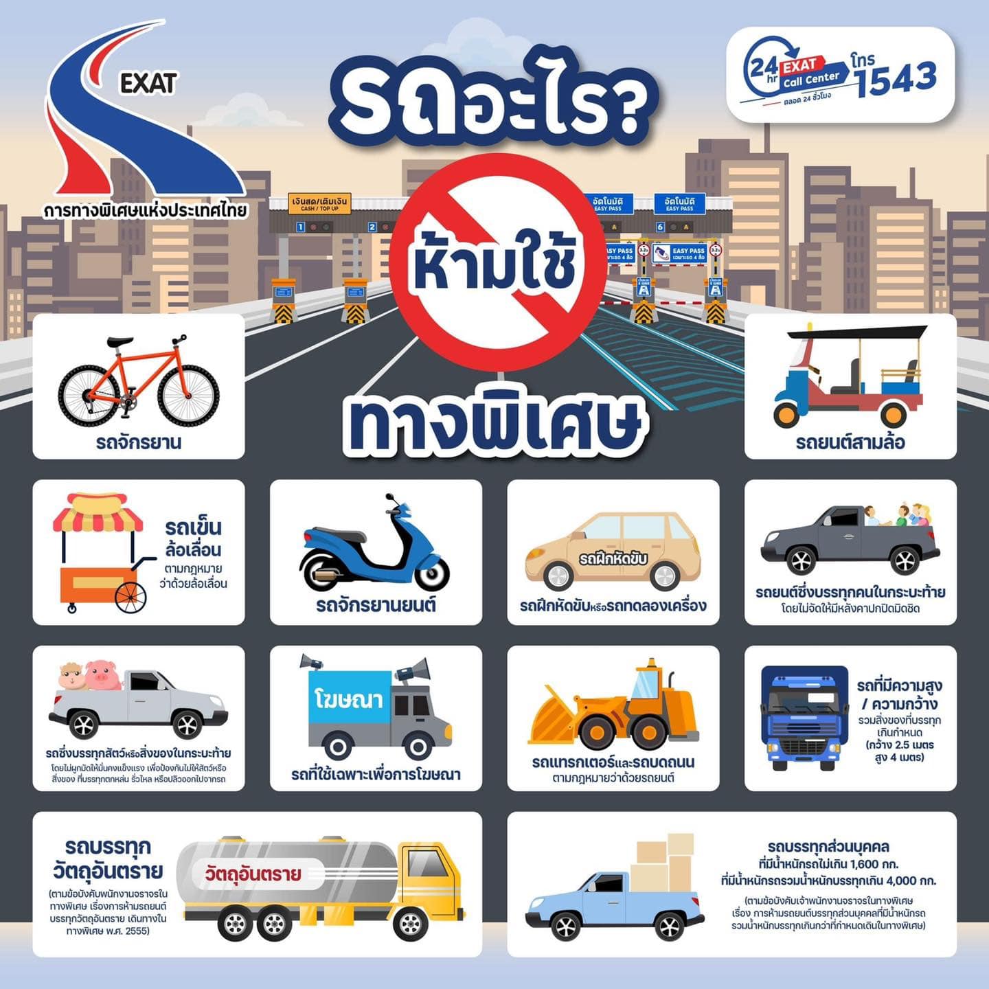 การทางพิเศษแห่งประเทศไทย แนะนำรถบางประเภทที่ห้ามขึ้นใช้ทางพิเศษมีทั้งหมด 12 ชนิด