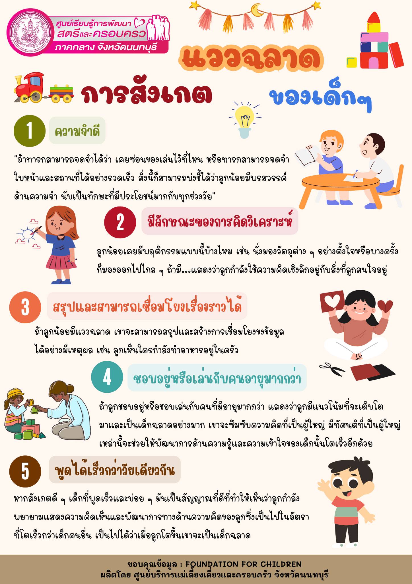 กรมกิจการสตรีและสถาบันครอบครัว แนะนำแววฉลาดการสังเกตของเด็กๆ