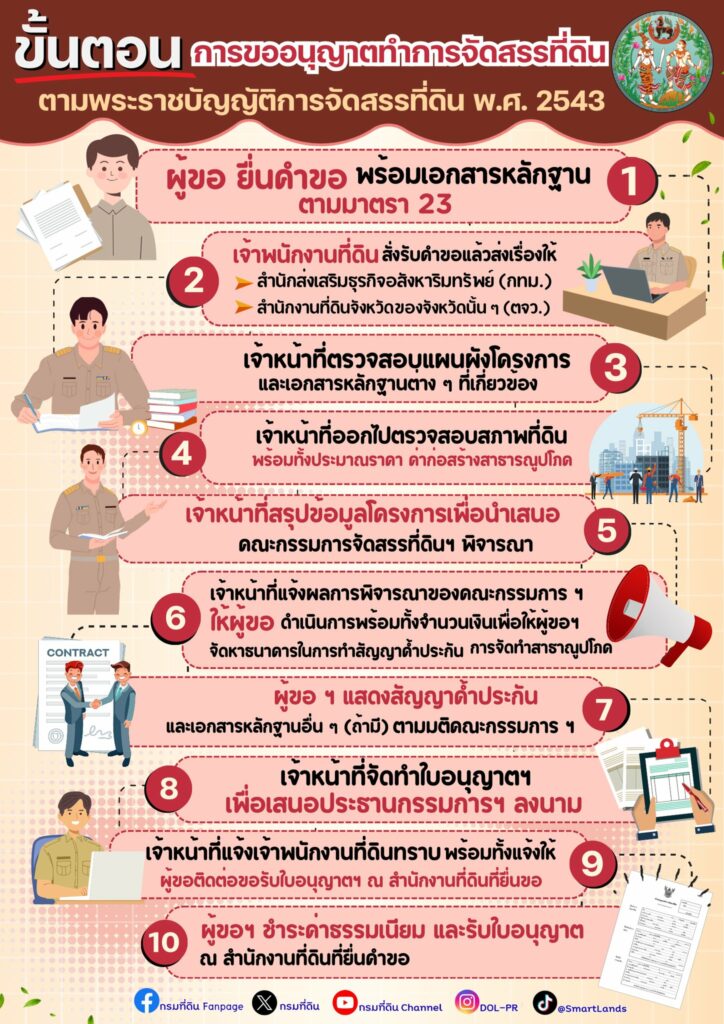 โดยขั้นตอนการขออนุญาตทำการจัดสรรที่ดิน 10 ขั้นตอน ดังนี้