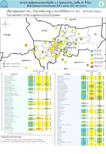 - กรุงเทพมหานครและปริมณฑล เกินค่ามาตรฐาน 1 พื้นที่ ตรวจวัดได้ 18.4 – 39.0 ไมโครกรัมต่อลูกบาศก์เมตร