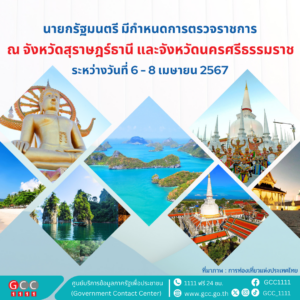 นายกรัฐมนตรี มีกำหนดการตรวจราชการ ณ จังหวัดสุราษฎร์ธานี และนครศรีธรรมราช วันที่ 6 – 8 เม.ย. 67