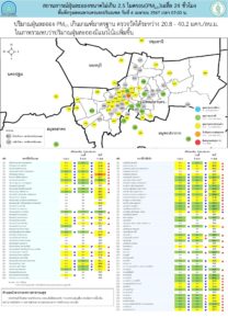 - กรุงเทพมหานครและปริมณฑล เกินค่ามาตรฐาน 1 พื้นที่ ตรวจวัดได้ 20.8 – 40.2 ไมโครกรัมต่อลูกบาศก์เมตร
