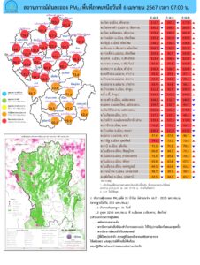 ศูนย์แก้ไขปัญหามลพิษทางอากาศ รายงานการติดตามตรวจสอบคุณภาพอากาศ ประจำวันที่ 6 เมษายน 2567 เวลา 07.00 น. สรุปดังนี้