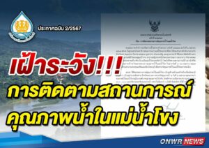 ประกาศ สำนักงานทรัพยากรน้ำแห่งชาติ ฉบับที่ 2/2567 เรื่อง การติดตามสถานการณ์คุณภาพน้ำในแม่น้ำโขง