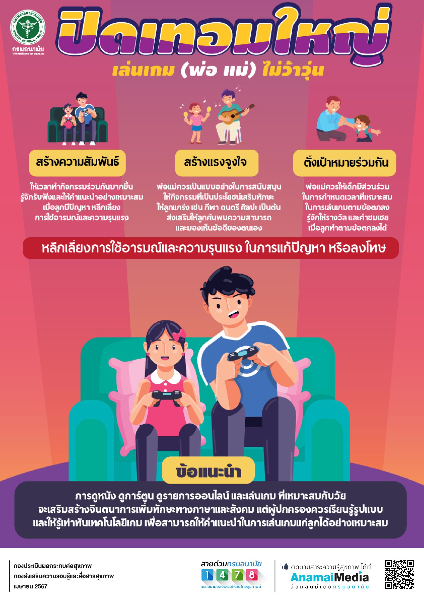 กรมอนามัย แนะนำปิดเทอมใหญ่ เล่นเกม (พ่อ แม่) ไม่ว้าวุ่น