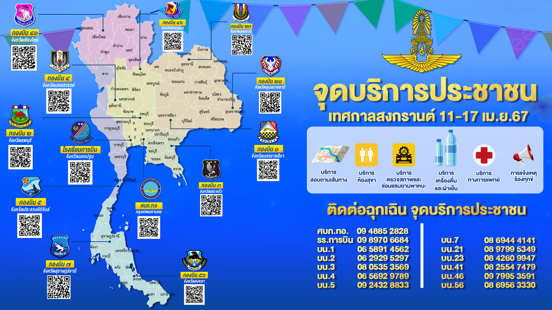 กองทัพอากาศ ตั้งจุดบริการประชาชนตลอดช่วงเทศกาลสงกรานต์ วันที่ 11 – 17 เมษายน 67