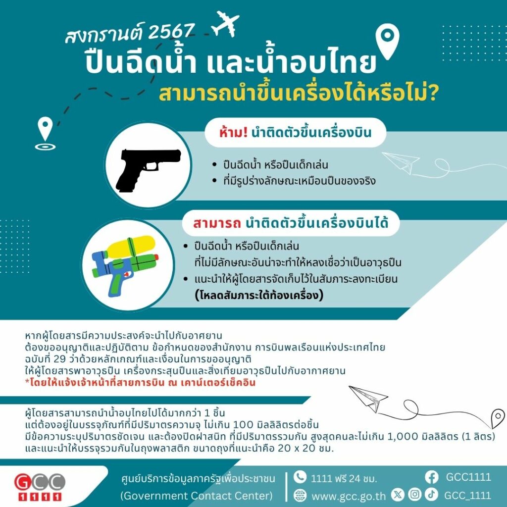 ท่าอากาศยานดอนเมือง เปิดเผย “ปืนฉีดน้ำ และน้ำอบไทยสามารถนำขึ้นเครื่องได้หรือไม่” โดยมีเงื่อนไข ดังนี้
