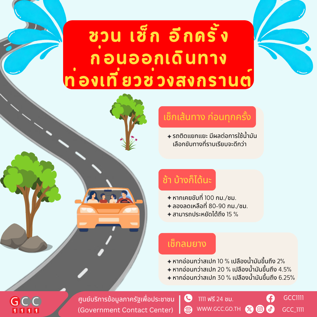 กรมพัฒนาพลังงานทดแทนและอนุรักษ์พลังงาน ชวนเช็คอีกครั้ง ก่อนเดินทางท่องเที่ยวช่วงสงกรานต์ ในการเดินทางช่วงสงกรานต์แบบนี้คงหนีไม่พ้นกับเรื่องค่าใช้จ่ายที่เยอะแยะมากมาย เรื่องไหนที่ช่วยประหยัดได้ก็ลงมือทำกันดีกว่าโดยเฉพาะเรื่องน้ำมัน ยิ่งขับทางไกลถ้าหากขับแบบตามใจค่าน้ำมันคงจะพุ่งสูงปรี๊ด ลองมาดูกันว่าจะเซฟค่าน้ำมันได้ยังไงบ้าง