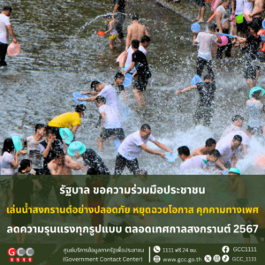 รัฐบาล ขอความร่วมมือประชาชน ร่วมรณรงค์เล่นสงกรานต์ปลอดภัย ให้เกียรติ หยุดฉวยโอกาส คุกคามทางเพศ ลดความรุนแรงทุกรูปแบบตลอดเทศกาลสงกรานต์ 2567