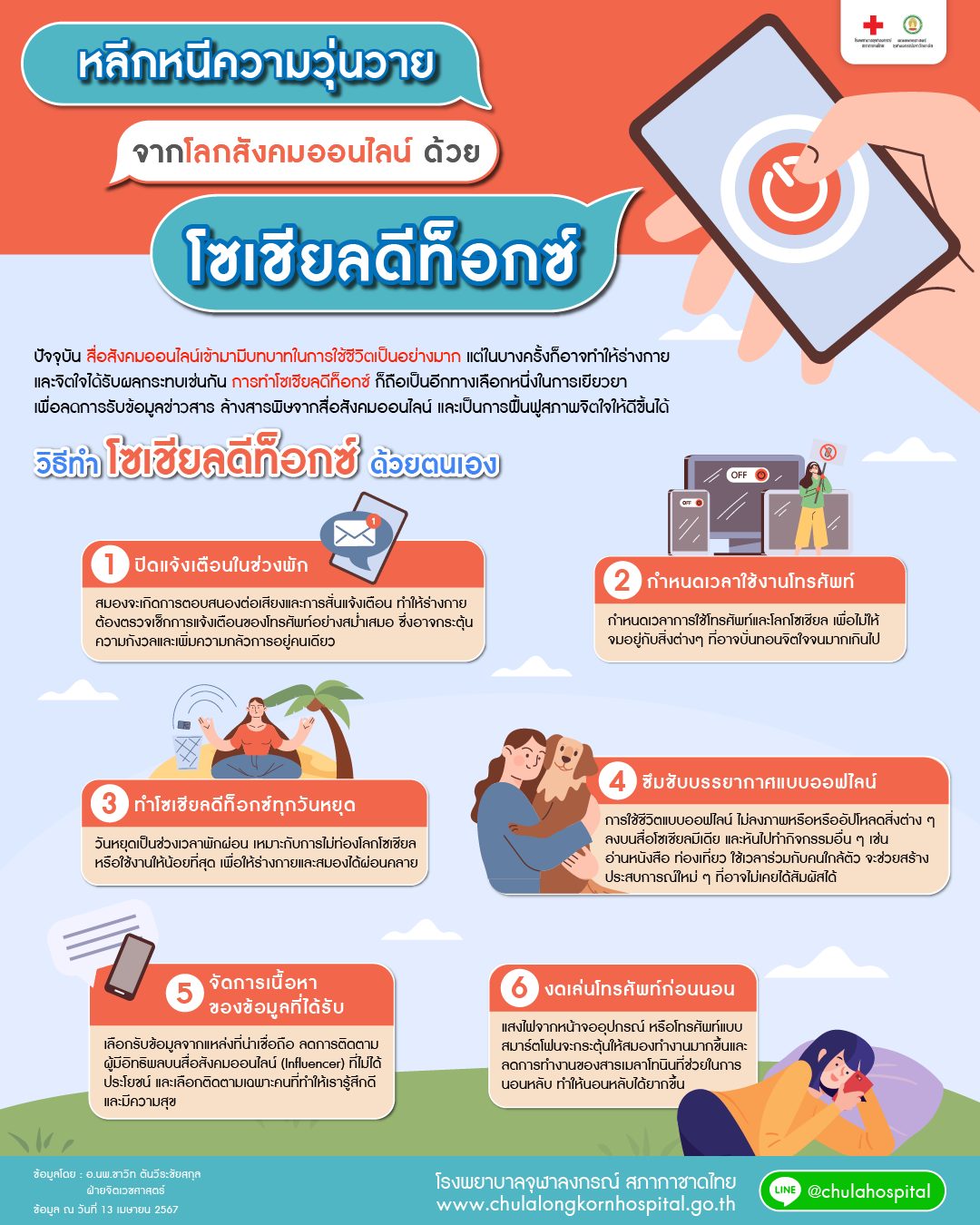 โรงพยาบาลจุฬาลงกรณ์ สภากาชาดไทย แนะนำหลีกหนีความวุ่นวาย จากโลกสังคมออนไลน์ ด้วย โซเชียลดีท็อกซ์