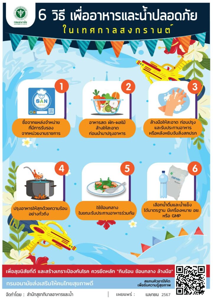 กรมอนามัย แนะนำ 6 วิธี เพื่่ออาหารและน้ำปลอดภัย ในเทศกาลสงกรานต์
