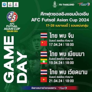 การกีฬาแห่งประเทศไทย เปิดเผยตารางการแข่งขันฟุตซอลชิงแชมป์เอเชีย 2024 เริ่ม 17 เม.ย. 2567