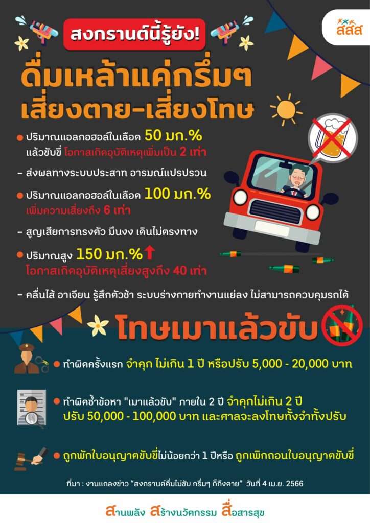 สำนักงานกองทุนสนับสนุนการสร้างเสริมสุขภาพ แจ้งเตือนดื่มเหล้าแค่กรึ่มๆ เสี่ยงตาย-เสี่ยงโทษ