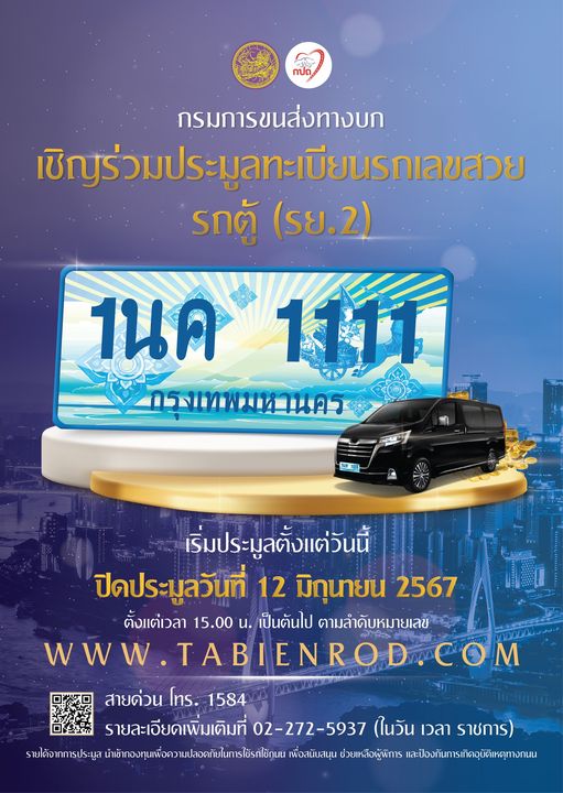 กองทุนเพื่อความปลอดภัยในการใช้รถใช้ถนน ขอเชิญร่วมประมูลทะเบียนรถเลชสวย รถตู้ หมวดอักษร 1 นค ลงทะเบียนเข้าร่วมประมูลได้แล้วตั้งแต่วันนี้