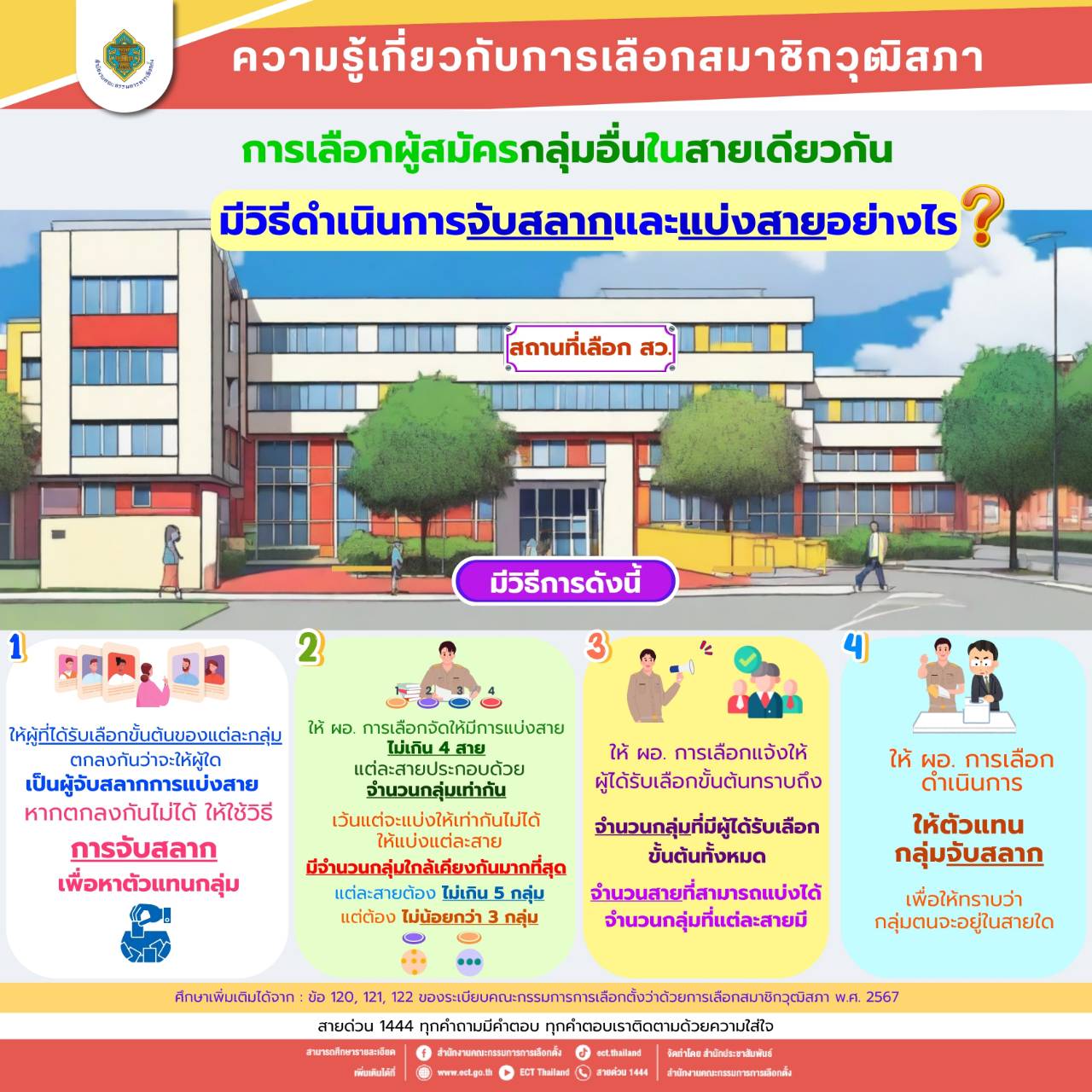 สำนักงานคณะกรรมการการเลือกตั้ง แนะนำการเลือกผู้สมัครกลุ่มอื่นในสายเดียวกัน มีวิธีดําเนินการจับสลากและแบ่งสายอย่างไร