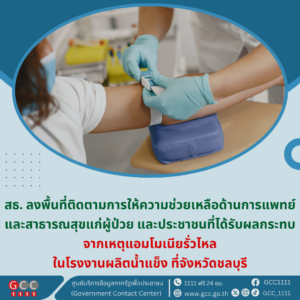 สธ. ลงพื้นที่ติดตามการให้ความช่วยเหลือด้านการแพทย์และสาธารณสุข เหตุแอมโมเนียรั่วไหลในโรงงานน้ำแข็ง จ.ชลบุรี