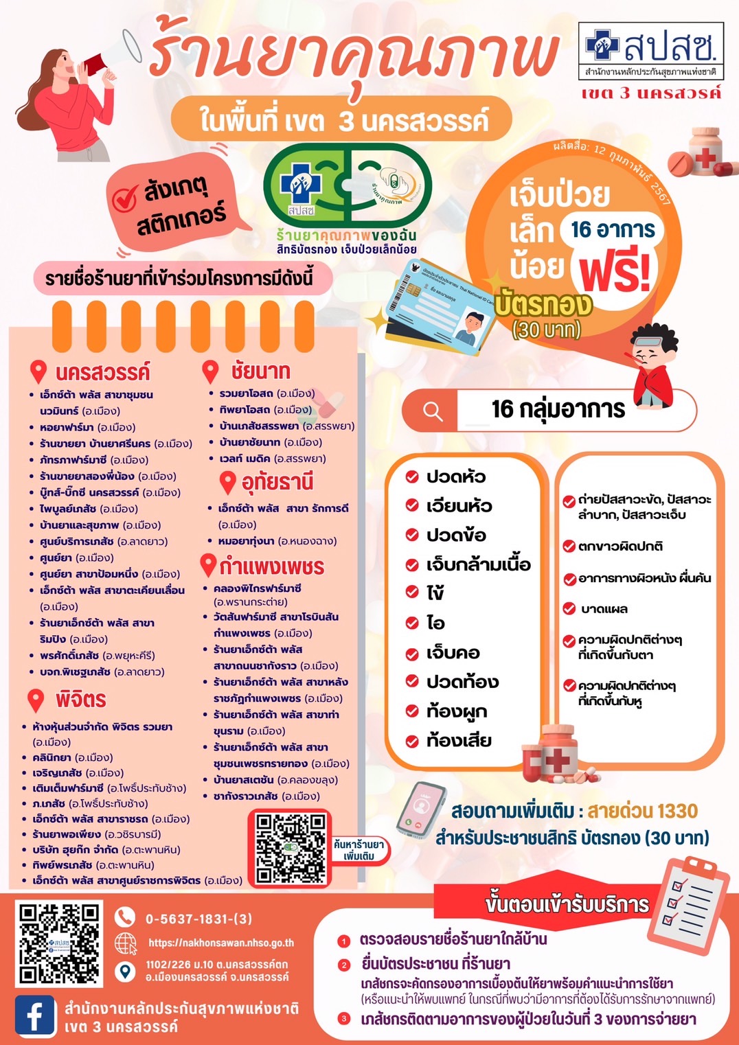 สำนักงานหลักประกันสุขภาพแห่งชาติ เขต 3 นครสวรรค์ เปิดเผยรายชื่อ “ร้านยาคุณภาพของฉัน”