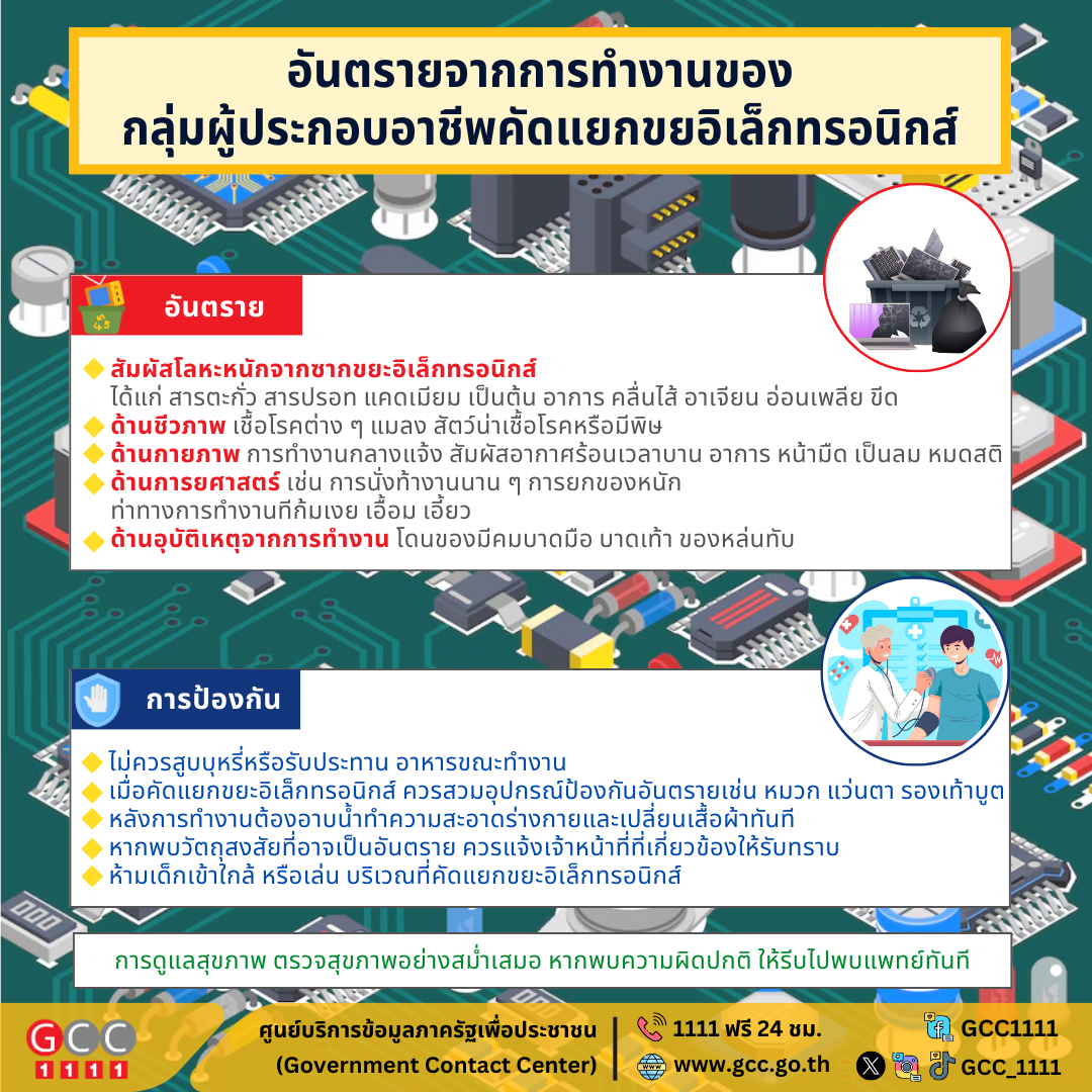 กรมควบคุมโรค แจ้งอันตรายจากการทำงานของกลุ่มผู้ประกอบอาชีพคัดแยกขยะอิเล็กทรอนิกส์