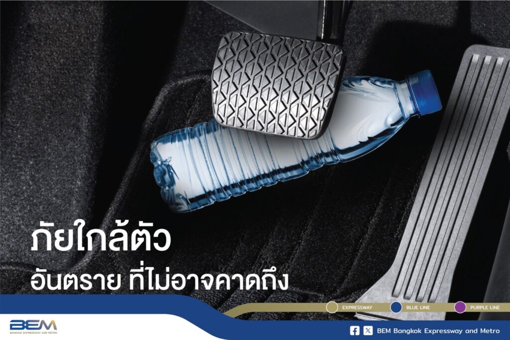 2. ตรวจสอบบริเวณพื้นรถว่าไม่มีรองเท้า หรือวัสดุอื่น ๆ อยู่ใต้เบรกหรือคันเร่ง ที่สำคัญคือเก็บขวดน้ำให้เรียบร้อย เพราะขวดน้ำที่อยู่ด้านหลังหรือด้านข้าง เมื่อขับไปอาจไหลกลิ้งมาอยู่ใต้เบรกได้ ในกรณีพื้นรถด้านข้างไม่มีที่กั้น