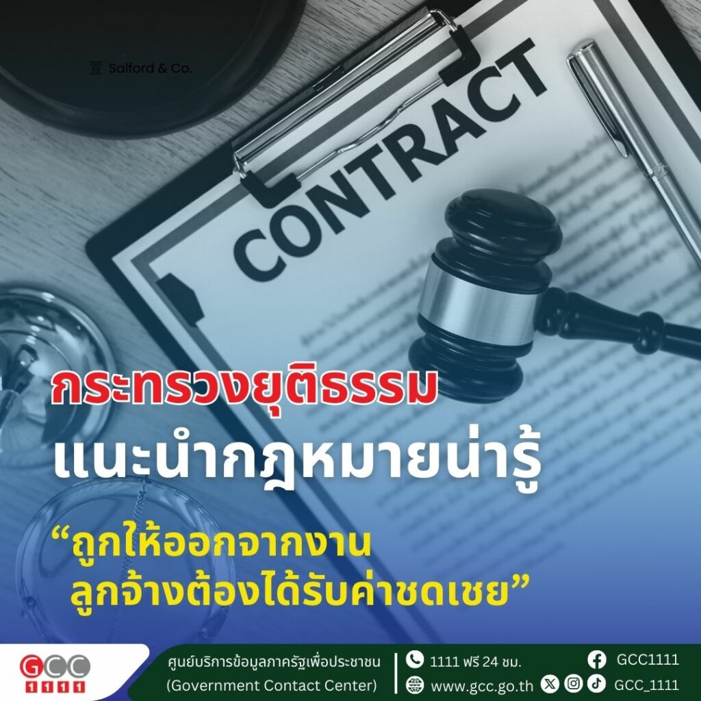 กระทรวงยุติธรรม แนะนำกฎหมายน่ารู้ “ถูกให้ออกจากงาน ลูกจ้างต้องได้รับค่าชดเชย”