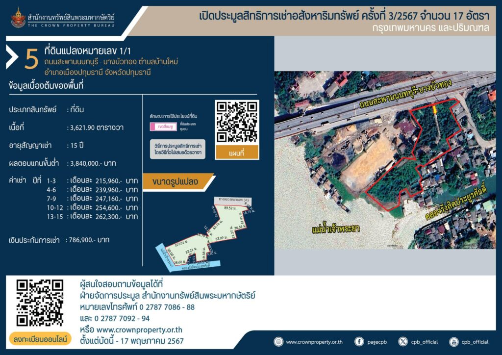 สำนักงานทรัพย์สินพระมหากษัตริย์ เปิดประมูลสิทธิการเช่าอสังหาริมทรัพย์ ครั้งที่ 3/2567 จังหวัดปทุมธานี