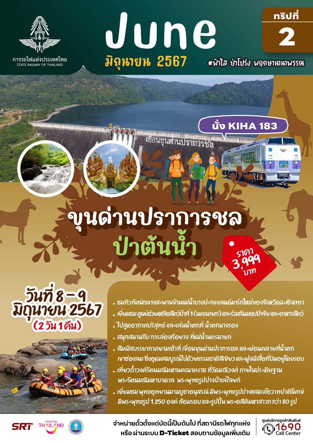 – ทริปที่ 9 แบบค้างคืน (วันที่ 8 – 9 มิถุนายน 67) โปรแกรม ขุนด่านปราการชล ป่าต้นน้ำ จังหวัดฉะเชิงเทรา – นครนายก พาเล่นน้ำตกนางรอง ล่องเรือยาง ขุนด่านปราการชล น้ำตกช่องลม ชมฝูงผีเสื้อสวยงาม พาเที่ยวถ้ำวงศ์รัตนมณีมหานครนาคราช คนละ 3,999 บาท