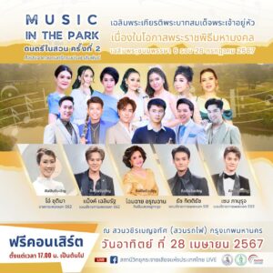 รัฐบาล ชวนชม “ดนตรีในสวน เฉลิมพระเกียรติในหลวง ร.10” ในวันที่ 28 เมษายน 2567 ณ สวนรถไฟ