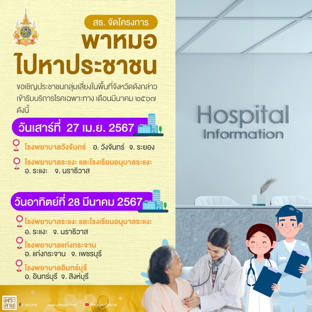 สธ. จัดโครงการพาหมอไปหาประชาชน ในวันที่ 27 – 28 เมษายน 2567