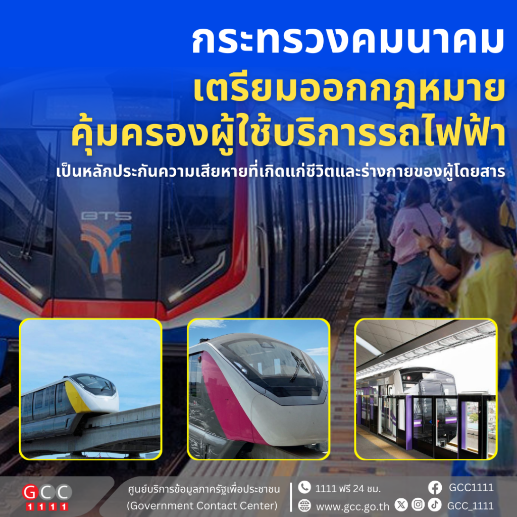กระทรวงคมนาคม ออกกฎกระทรวงประกันความเสียหายคนโดยสาร​ ย้ำความปลอดภัยสูงสุดของประชาชนผู้ใช้บริการรถไฟฟ้า​ ให้เดินทางอย่างสบายใจ มีหลักประกันการใช้บริการ