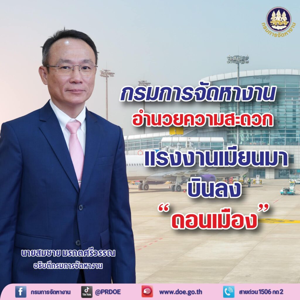 กรมการจัดหางาน กระทรวงแรงงาน เพิ่มช่องทางเข้าประเทศไทยผ่านสนามบินดอนเมือง อำนวยความสะดวกแรงงานเมียนมาที่เข้ามาทำงานตาม MOU ป้องกันเหตุนำเข้าแรงงานสะดุดกระทบนายจ้างในประเทศไทย