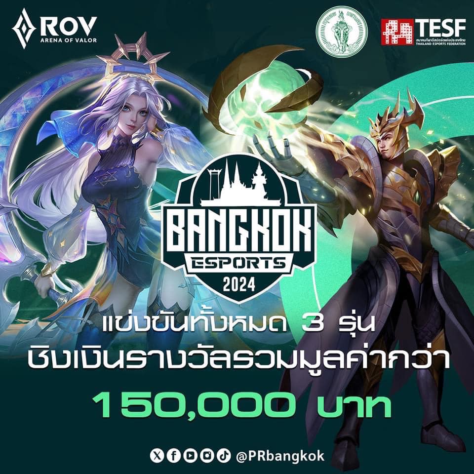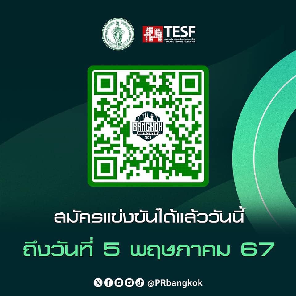 กรุงเทพมหานคร โดยสํานักวัฒนธรรม กีฬา และการท่องเที่ยว กรุงเทพมหานคร ร่วมกับสมาคมกีฬาอีสปอร์ตแห่งประเทศไทย จัดกิจกรรม Bangkok Esports 2024 การแข่งขันกีฬาอีสปอร์ตรายการใหญ่ สมัครตั้งแต่บัดนี้ – 5 พฤษภาคม 2567 สมัครได้ที่ https://tesf.or.th/bangkokesports2024/ รอบชิงชนะเลิศ วันที่ 25 – 26 พฤษภาคม 2567 ณ ห้องบางกอก อาคารไอราวัตพัฒนา ศาลาว่าการกรุงเทพมหานคร ชิงเงินรางวัลรวมมูลค่ากว่า 260,000 บาท โดยเกมที่ใช้แข่งขันประกอบไปด้วย การแข่งขัน ARENA OF VALOR (ROV) (ประเภททีม)   การแข่งขัน FREE FIRE (ประเภททีม)   การแข่งขัน FC Online (ประเภทบุคคล)   การแข่งขัน Street Fighter VI (ประเภทบุคคล)
