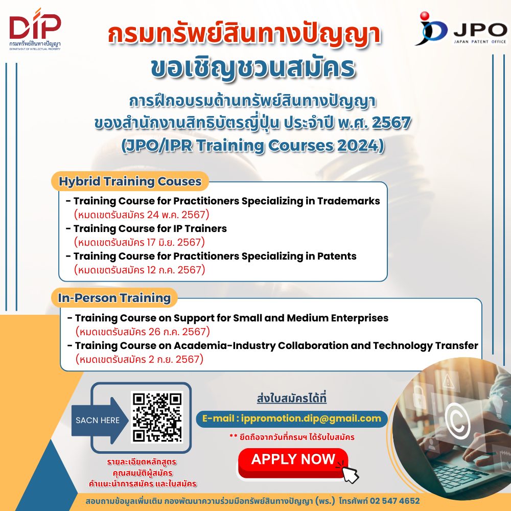 - Training Course for IP Trainers (หมดเขตรับสมัคร 17 มิถุนายน 2567)