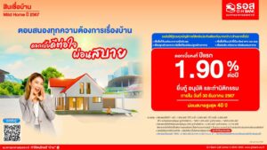 ธนาคารอาคารสงเคราะห์ จัดทำสินเชื่อ Mild Home อัตราดอกเบี้ยปีแรกเพียง 1.90% ต่อปี ผ่อนเริ่มต้นเพียง 2,500 บาท/เดือน
