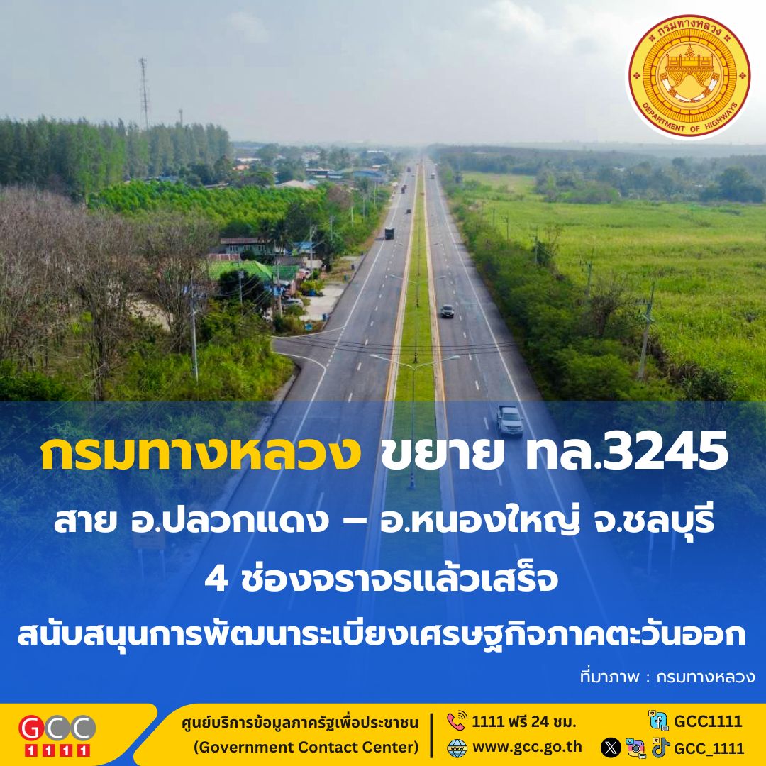 กรมทางหลวง โดยสำนักก่อสร้างทางที่ 2 ได้ดำเนินโครงการก่อสร้างขยายทางหลวงหมายเลข 3245 สาย อ.ปลวกแดง – อ.หนองใหญ่ จ.ชลบุรี ระหว่าง กม.22+142 – กม.34+000 จาก 2 ช่องจราจร เป็น 4 ช่องจราจร แล้วเสร็จ ระยะทาง 11.85 กิโลเมตร ตามแผนงานบูรณาการพัฒนาระบบทางหลวงเพื่อรองรับระเบียงเศรษฐกิจภาคตะวันออก