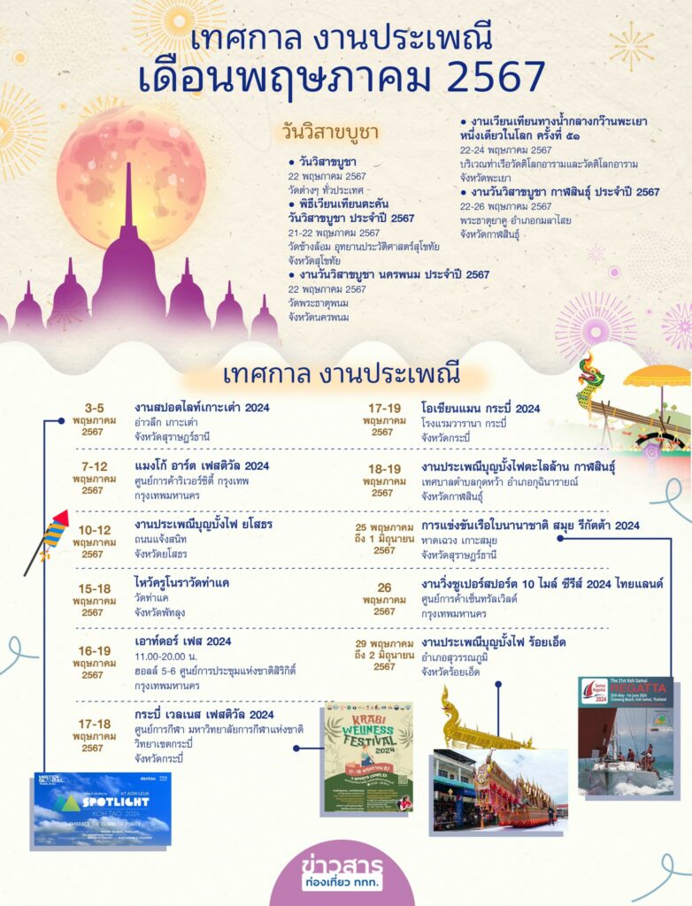 ททท. แจ้งปฏิทิน “เทศกาลงานประเพณี เดือนพฤษภาคม 2567”
