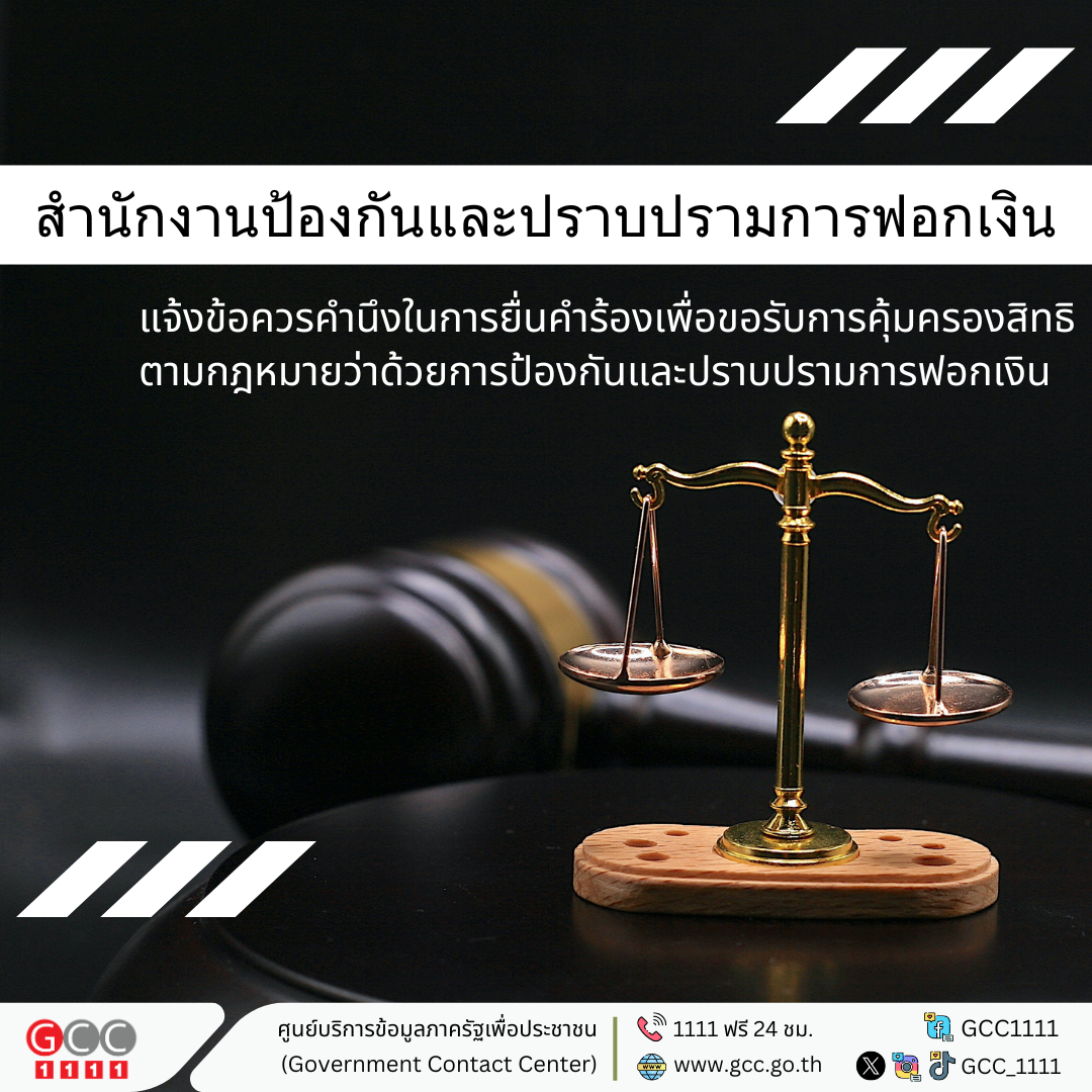 สำนักงาน ปปง. แนะนำข้อควรคำนึงในการยื่นคำร้องเพื่อขอรับการคุ้มครองการฟอกเงิน
