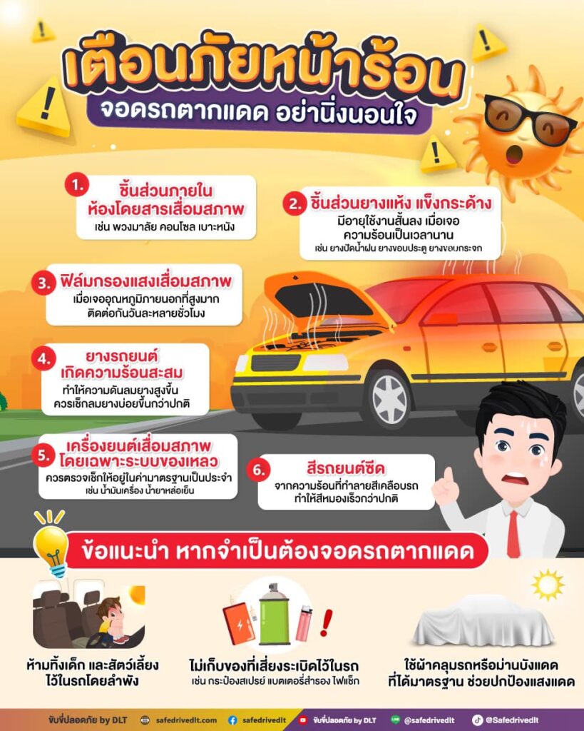 กรมการขนส่งทางบก เตือนภัยหน้าร้อน “จอดรถตากแดดอย่านิ่งนอนใจ”