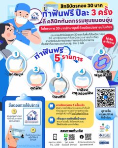 สปสช. ให้สิทธิบัตรทอง 30 บาท ทำฟันฟรี ที่คลินิกทันตกรรมชุมชนอบอุ่น ปีละ 3 ครั้ง