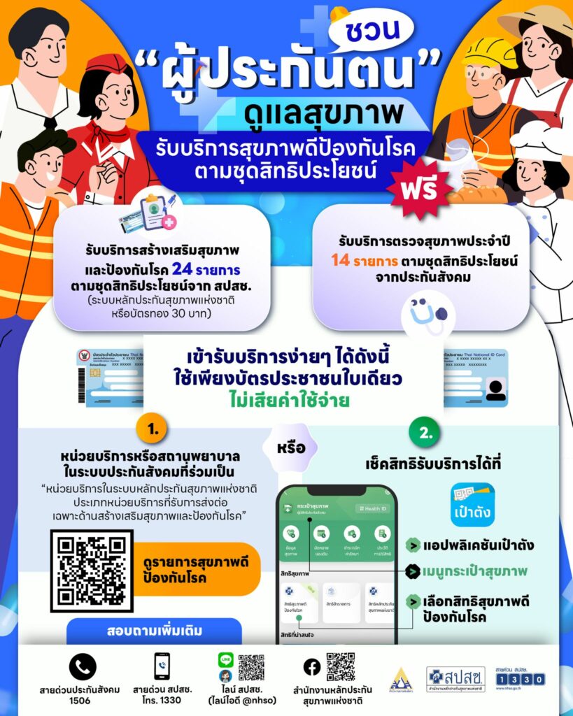 สำนักงานหลักประกันสุขภาพแห่งชาติ เชิญชวน “ผู้ประกันตน” ดูแลสุขภาพรับบริการสุขภาพดีป้องกันโรค ตามชุดสิทธิประโยชน์ ฟรี