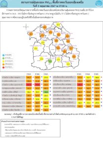 - กรุงเทพมหานครและปริมณฑล เกินค่ามาตรฐาน 16 พื้นที่ ตรวจวัดได้ 26.8 – 44.4 ไมโครกรัมต่อลูกบาศก์เมตร