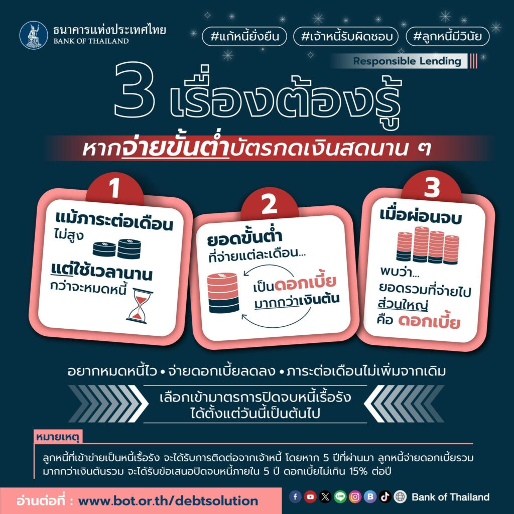 ธนาคารแห่งประเทศไทย แนะนำ 3 เรื่องต้องรู้ หากจ่ายขั้นต่ำบัตรกดเงินสดนาน ๆ