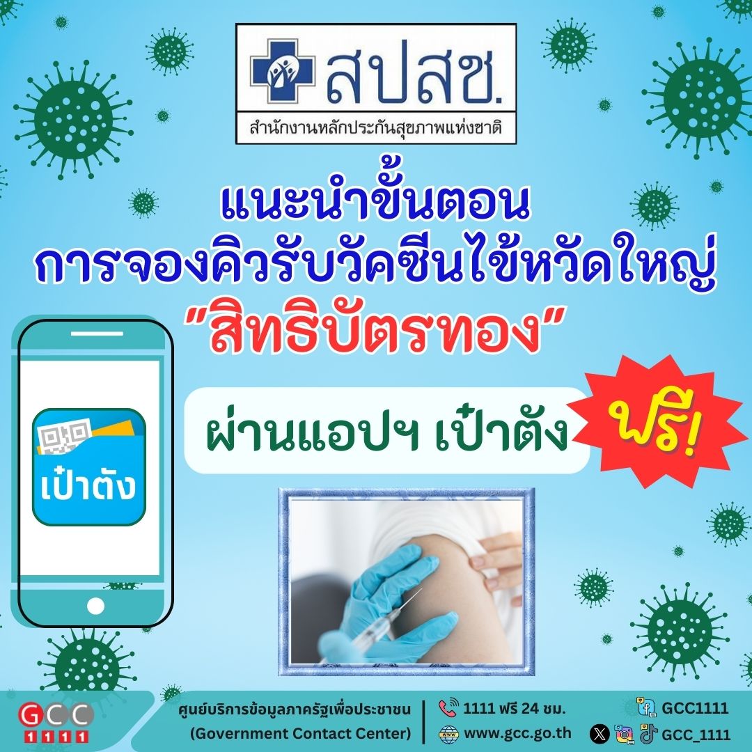 สปสช. แนะนำขั้นตอนการจองคิวรับวัคซีนไข้หวัดใหญ่ “สิทธิบัตรทอง”