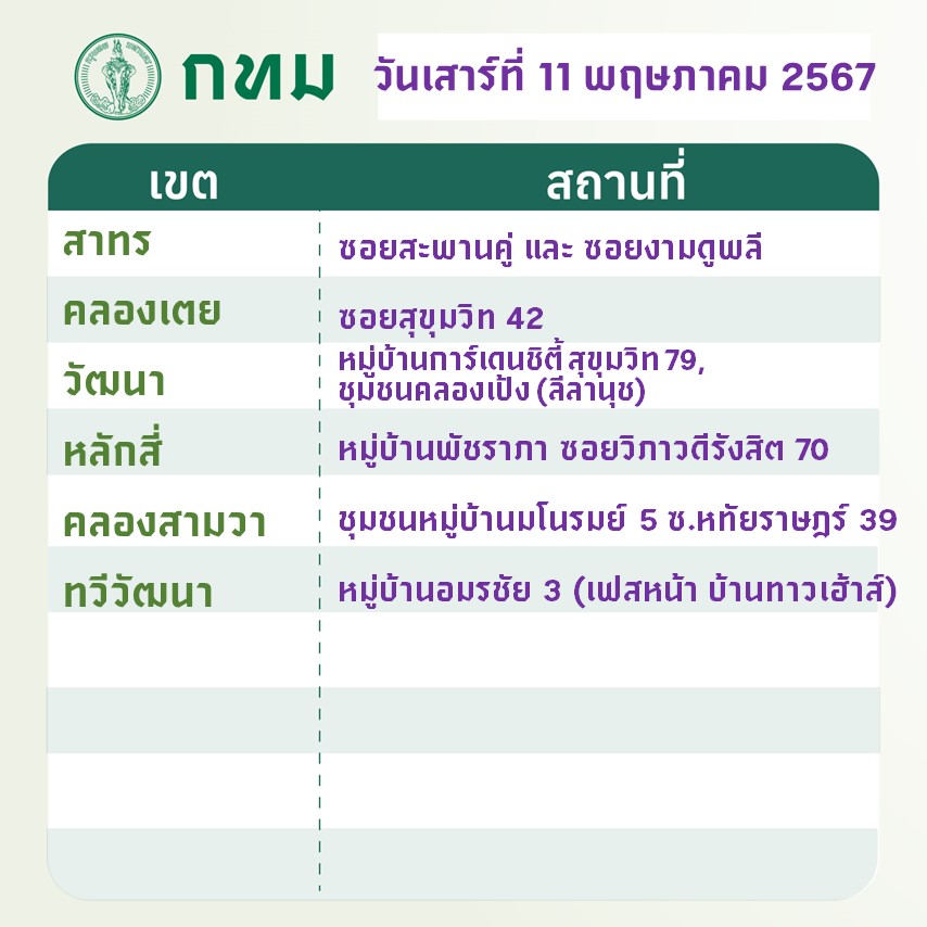 กรุงเทพมหานคร นัดทิ้ง นัดเก็บ ขยะชิ้นใหญ่ วันที่ 11 – 12 พ.ค. 67 ข่าวสารกิจกรรม กรุงเทพมหานคร นัดทิ้ง นัดเก็บ ขยะชิ้นใหญ่ วันที่ 11 – 12 พ.ค. 67 กรุงเทพมหานคร นัดทิ้ง นัดเก็บ ขยะชิ้นใหญ่ วันที่ 11 – 12 พฤษภาคม 2567 ตั้งแต่เวลา 09.00 – 12.00 น. ทุกสำนักงานเขตให้บริการฟรี โดยไม่มีค่าใช้จ่าย ติดตามข่าวสาร นัดทิ้ง นัดเก็บ ขยะชิ้นใหญ่ ทุกเสาร์ – อาทิตย์ ได้ที่https://pr-bangkok.com/?page_id=564 https://www.facebook.com/prbangkok/ https://twitter.com/pr_bangkok ที่มา : https://citly.me/6acGA Post Views: 89 FacebookFacebookXTwitterLINELine
