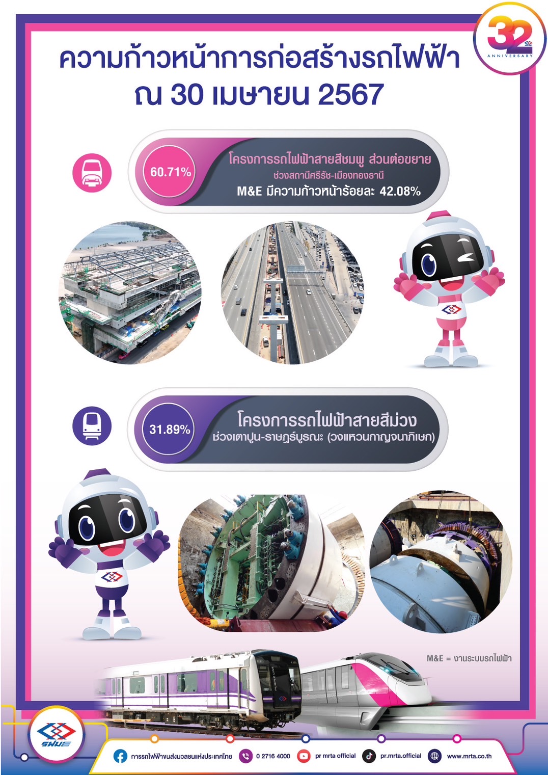 การรถไฟฟ้าขนส่งมวลชนแห่งประเทศไทย รายงานความก้าวหน้างานก่อสร้างโครงการรถไฟฟ้าในความรับผิดชอบของ รฟม. ณ สิ้นเดือนเมษายน 2567