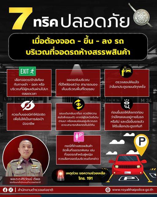 สำนักงานตำรวจแห่งชาติ แนะนำ 7 ข้อควรปฏิบัติ ในการจอด และ ขึ้น-ลงรถ ภายในที่จอดรถห้างสรรพสินค้า