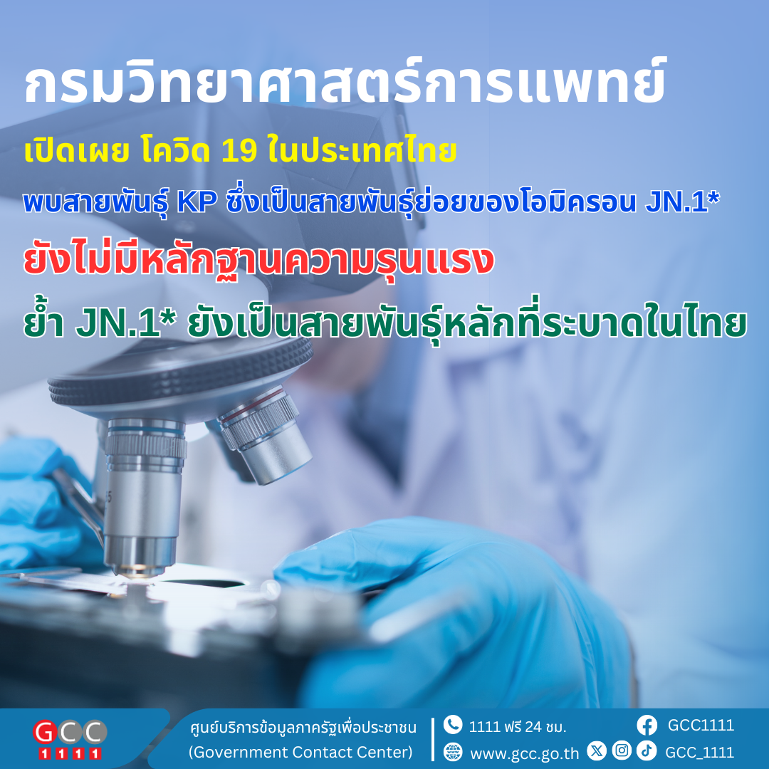 กรมวิทยาศาสตร์การแพทย์ เปิดเผยโควิด 19 ในไทย พบสายพันธุ์ KP ซึ่งเป็นสายพันธุ์ย่อยของโอมิครอน JN.1*